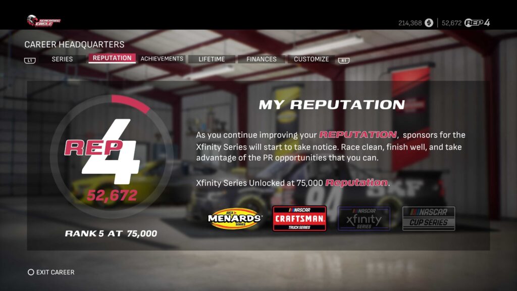 Not only is NASCAR 25 an authentic game for race fans, but it’s also a good game for players who like menus. In fact, you’d be forgiven for thinking this game is mostly about menus.