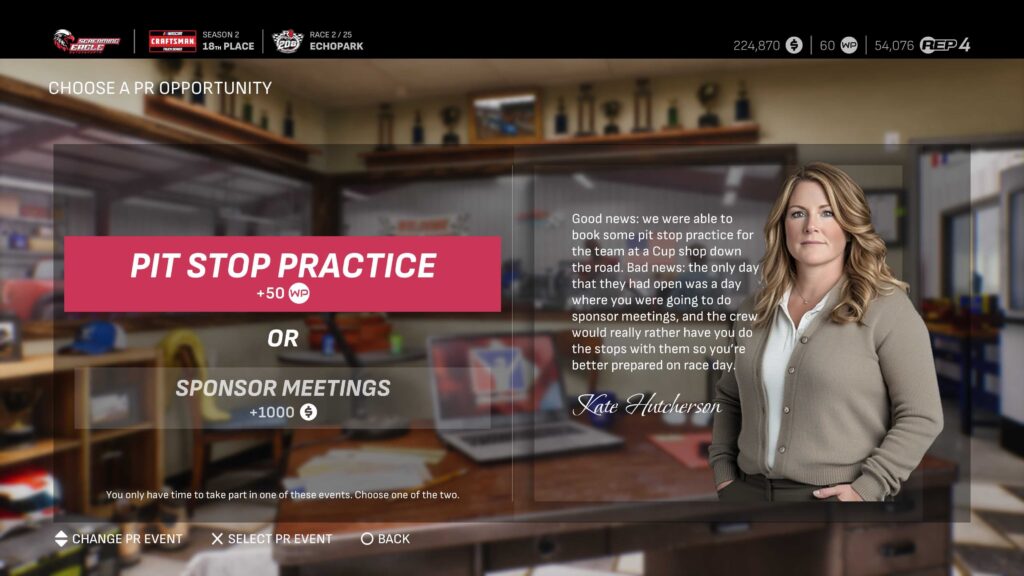 NASCAR 25 has several compelling ideas for its single-player gameplay, but they can often feel undercooked or, at best, disconnected. Let’s start with the Career Mode. It’s full of little RPG-lite systems that hint at what could be an expansive career management game, but these systems never expand on their ideas or interact with each other.