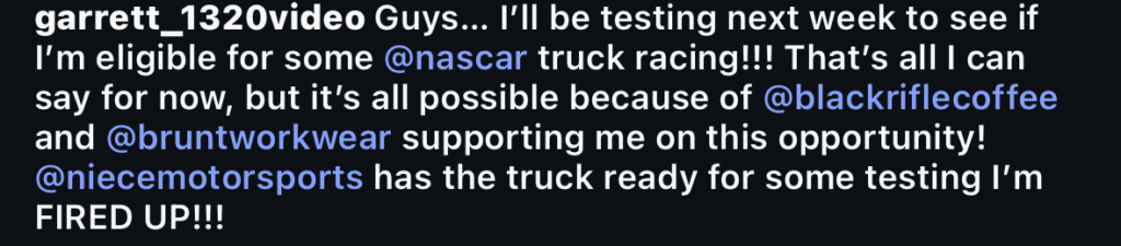 Mitchell, who announced these plans in a post to his Instagram, will test Niece Motorsports’ No. 4, with approval. This test will hopefully add him to the team’s stacked lineup of part-time drivers for the season.
