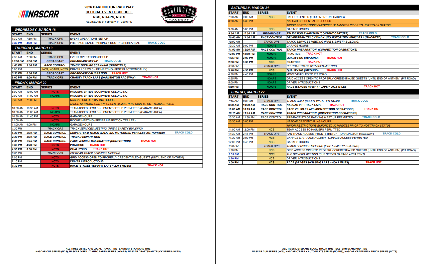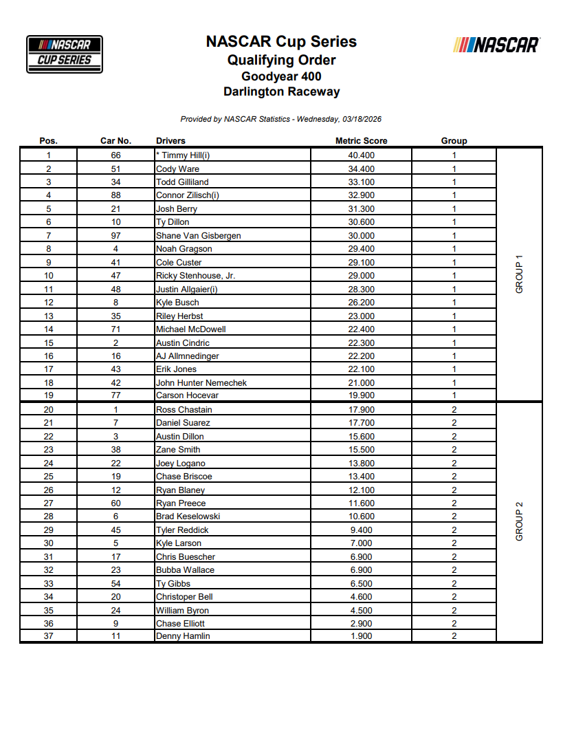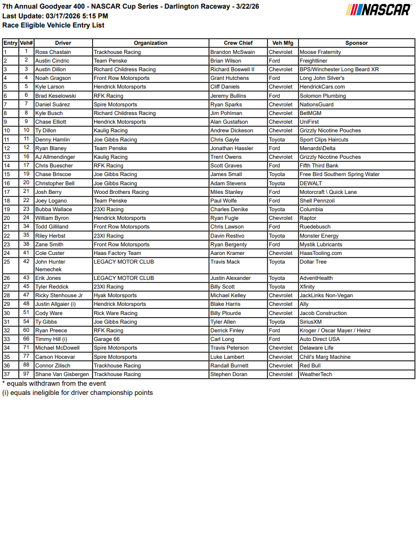 Darlington Cup Series March 2026
