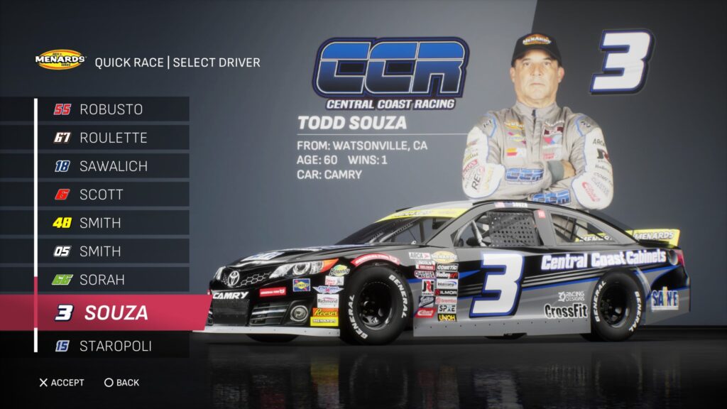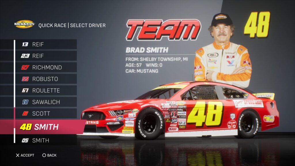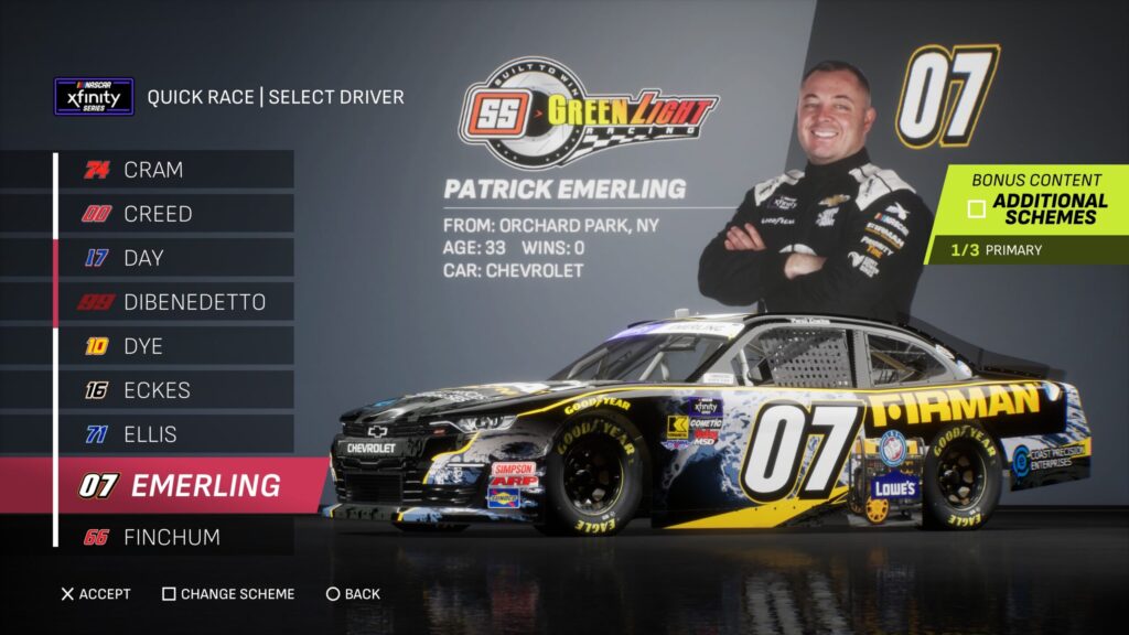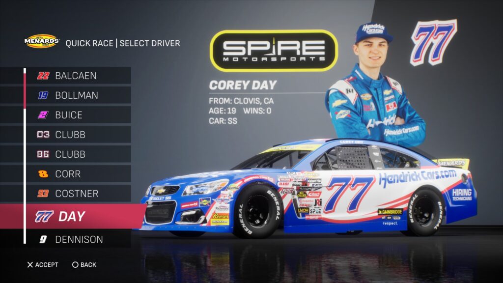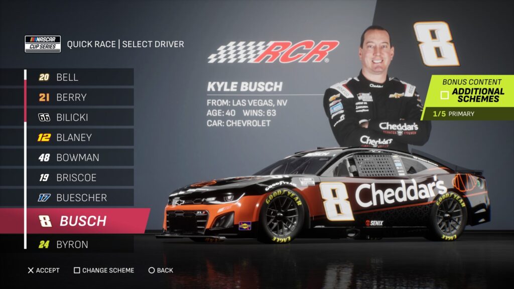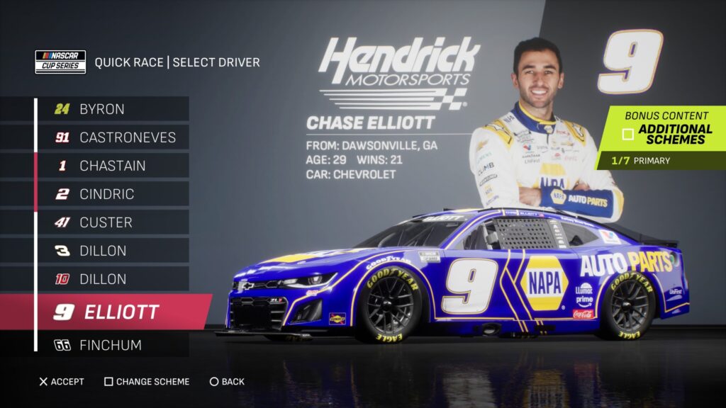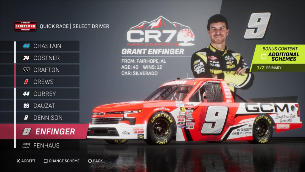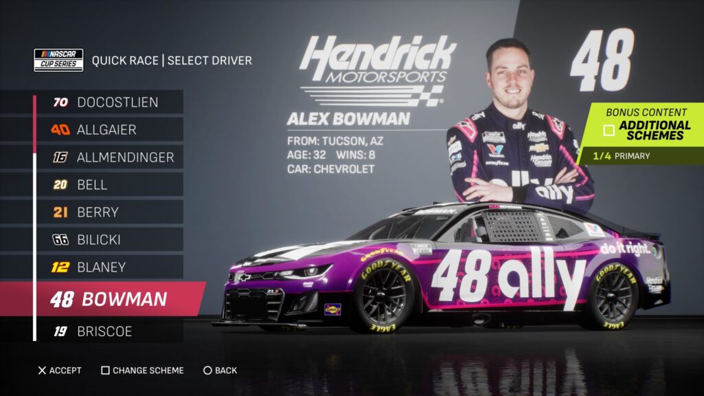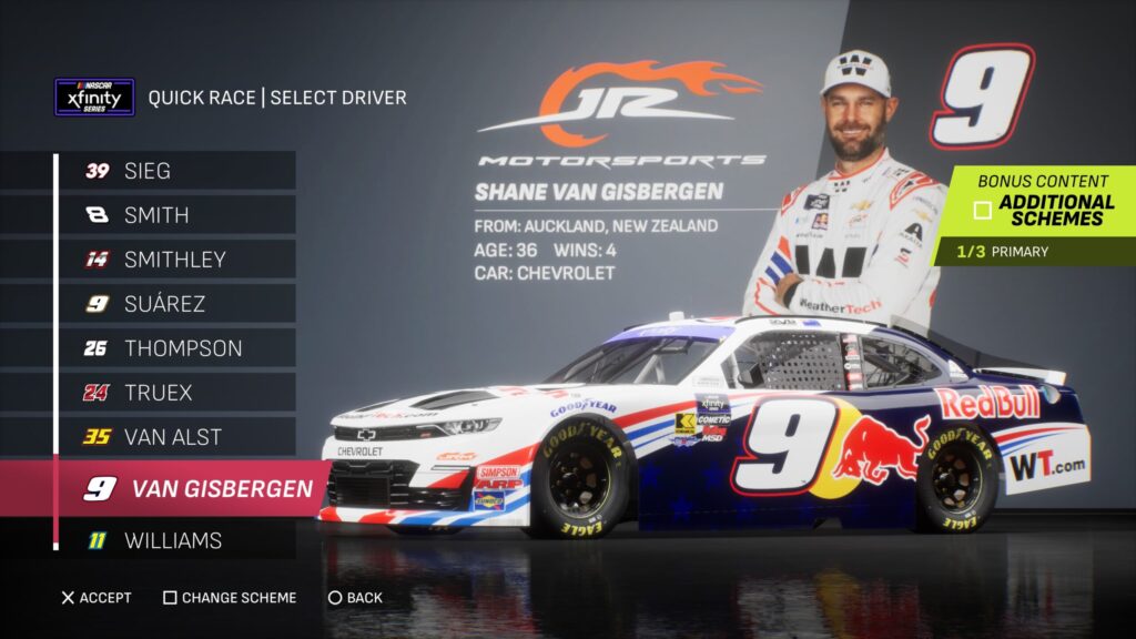 - Though the game gave fans several drivers to select base paint schemes from, its total number is boosted by the inclusion of the three NASCAR National Series and the NASCAR console gaming debut of the ARCA Menards Series.
