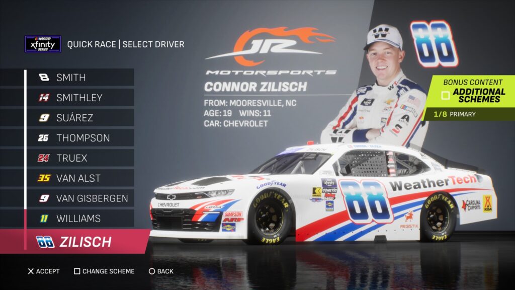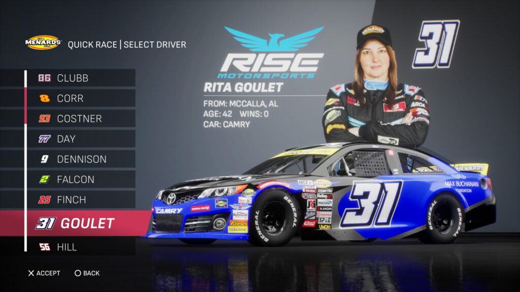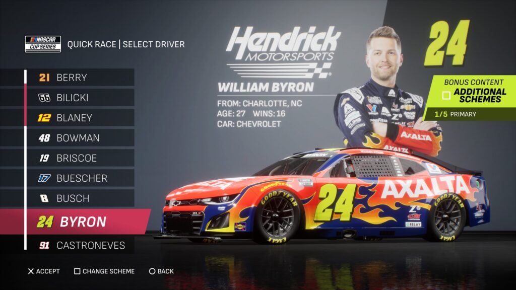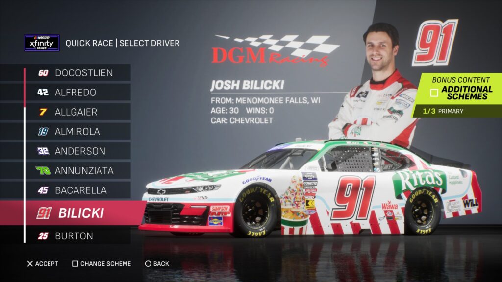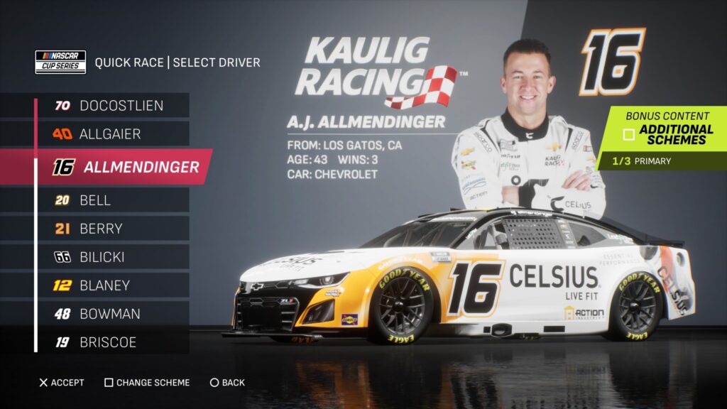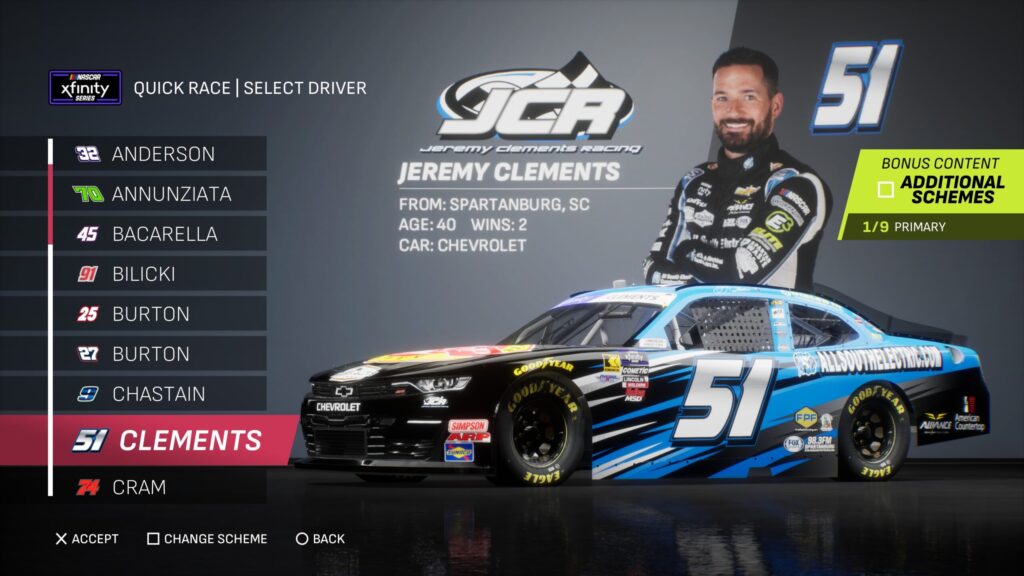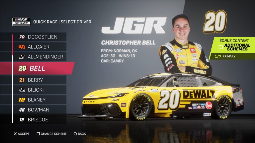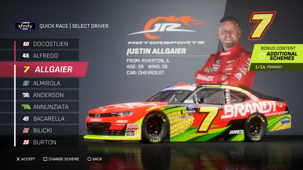- Though the game gave fans several drivers to select base paint schemes from, its total number is boosted by the inclusion of the three NASCAR National Series and the NASCAR console gaming debut of the ARCA Menards Series.