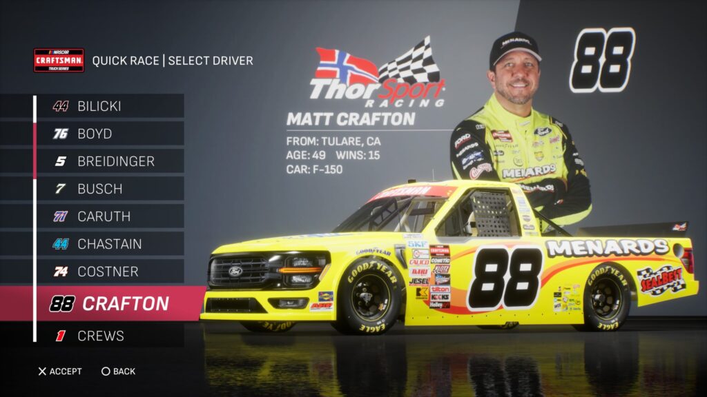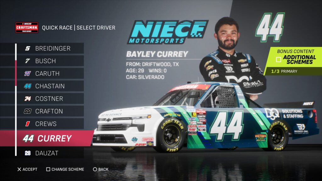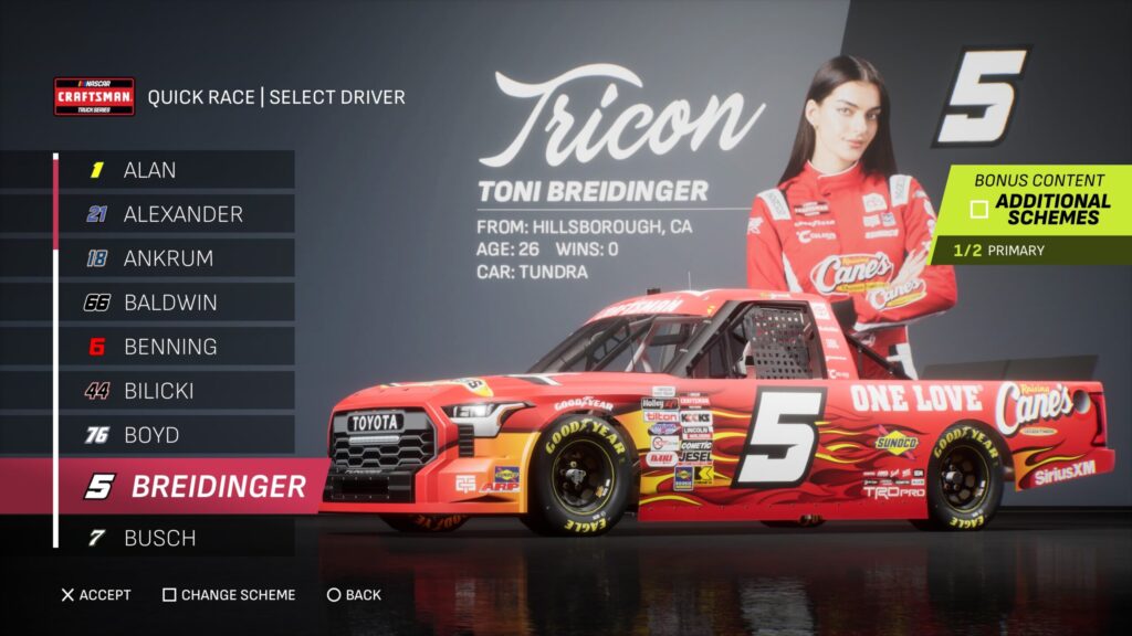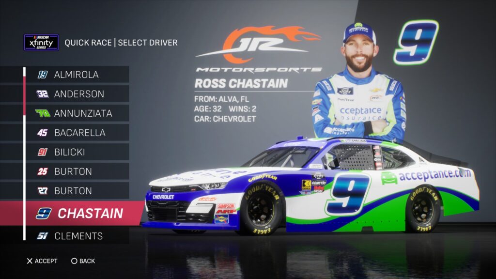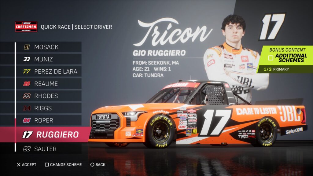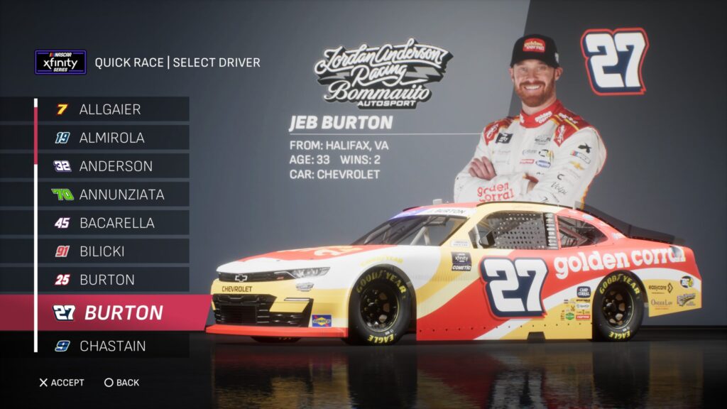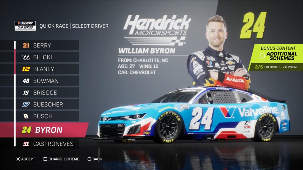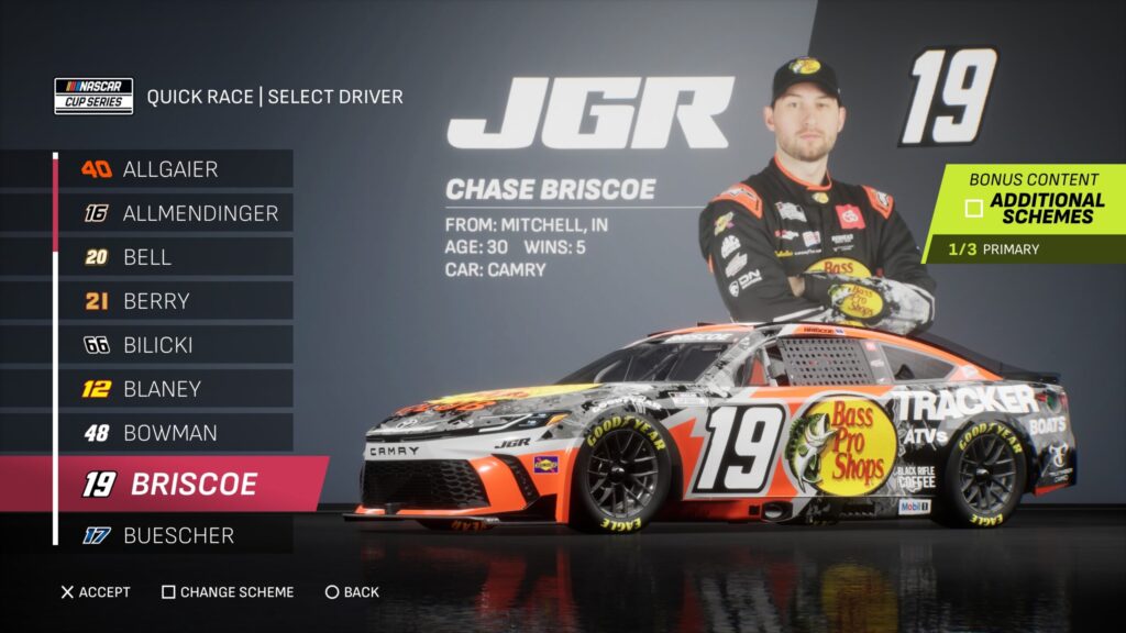 - Though the game gave fans several drivers to select base paint schemes from, its total number is boosted by the inclusion of the three NASCAR National Series and the NASCAR console gaming debut of the ARCA Menards Series.
