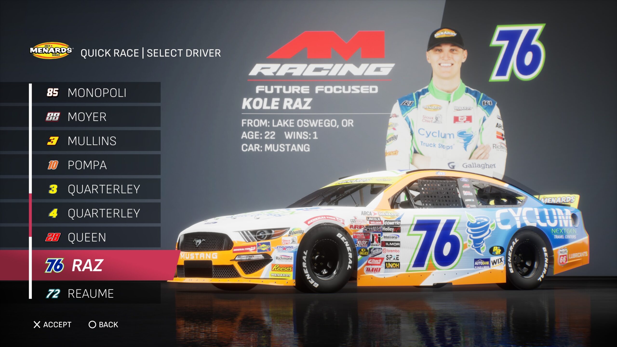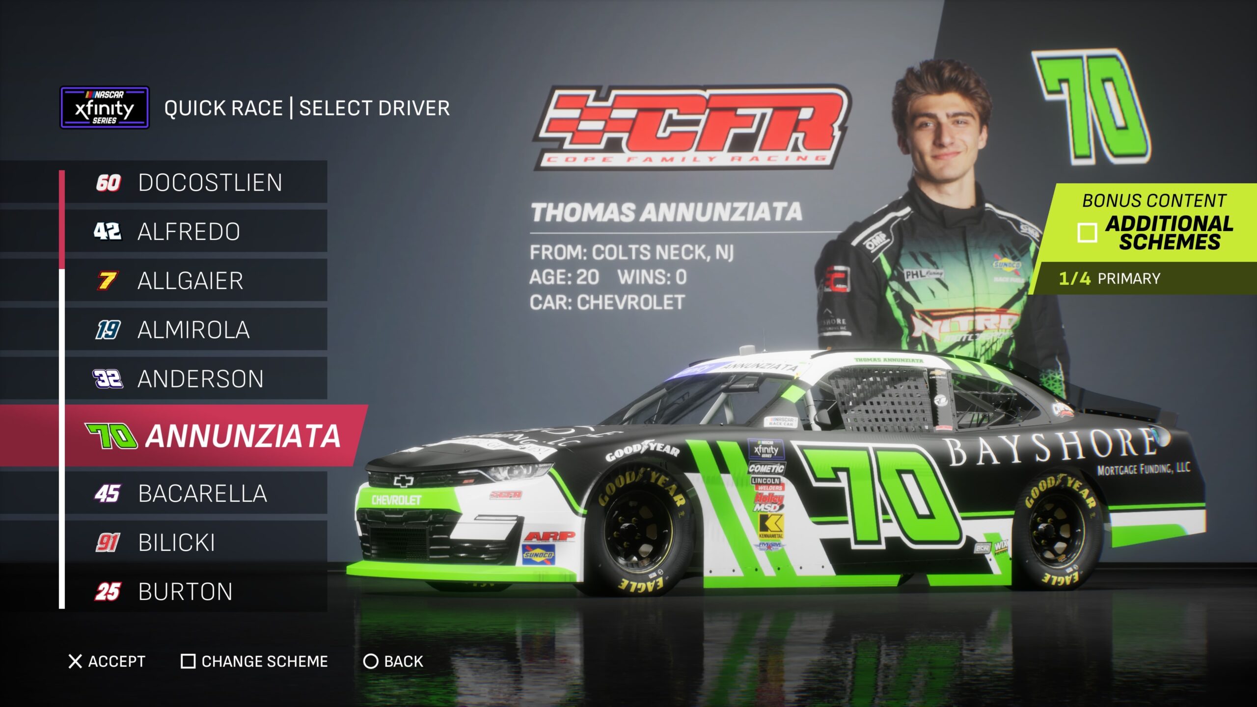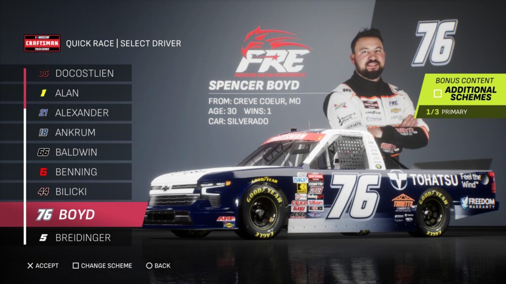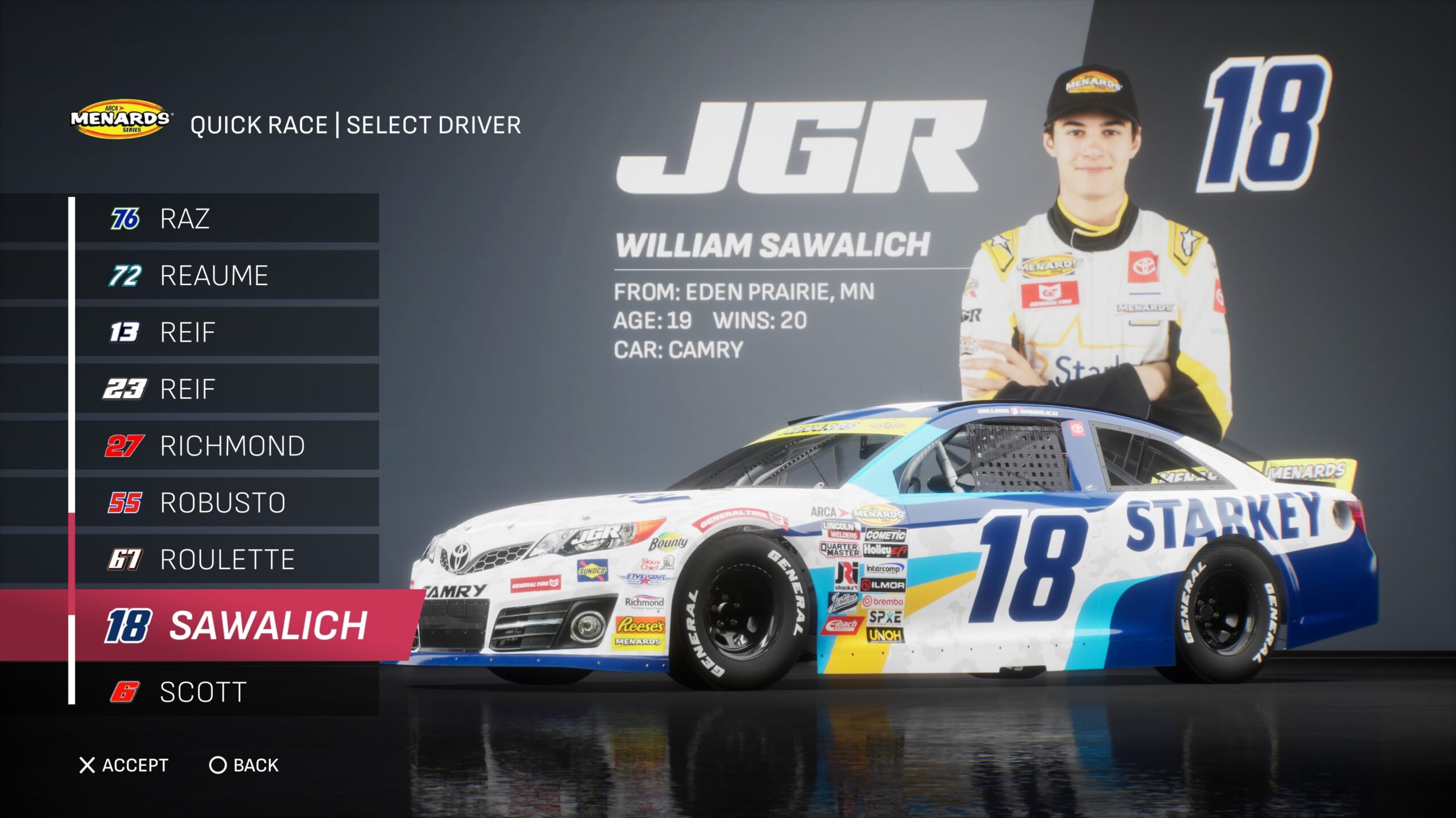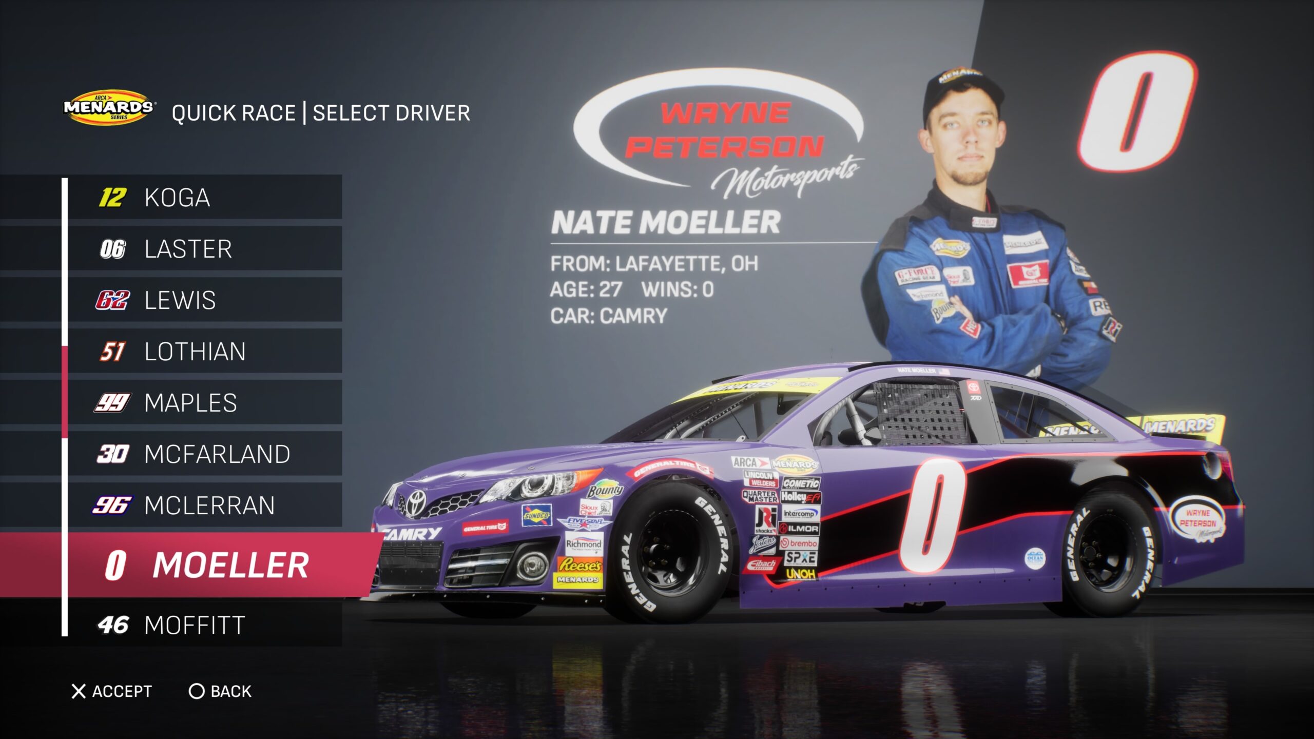 - Though the game gave fans several drivers to select base paint schemes from, its total number is boosted by the inclusion of the three NASCAR National Series and the NASCAR console gaming debut of the ARCA Menards Series.