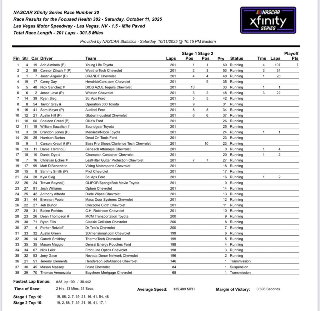 — NASCAR Xfinity (@NASCAR_Xfinity) October 12, 2025
