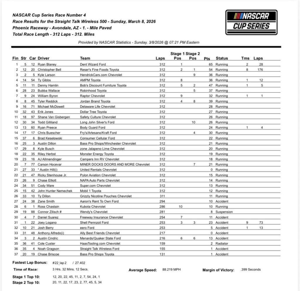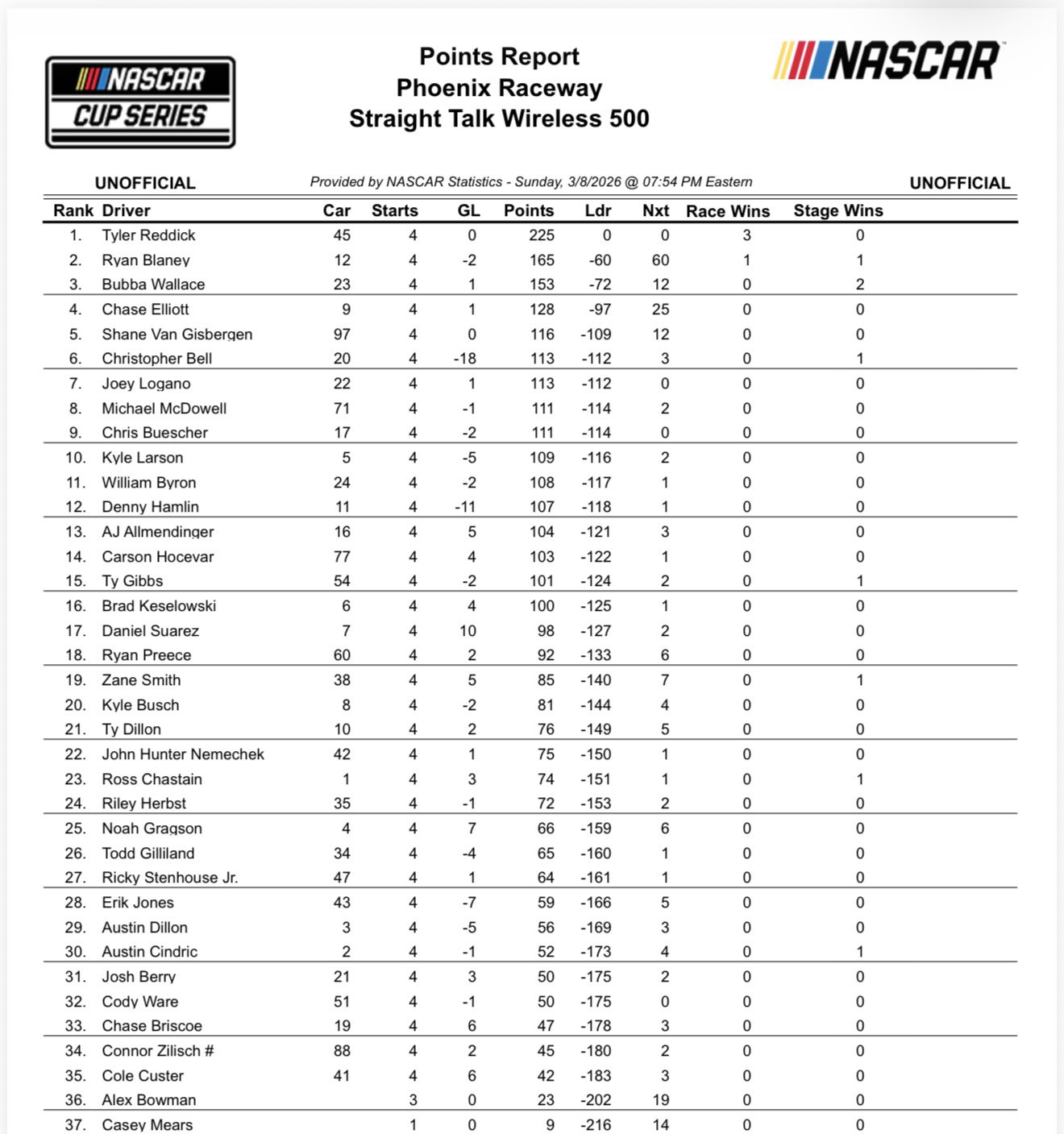 As the season goes on, however, it will be vital for SVG to improve even more. A good start is getting more consistent top 5 and top 10 results on ovals. If he wants to be successful in the Cup Series, he has to get better at that.