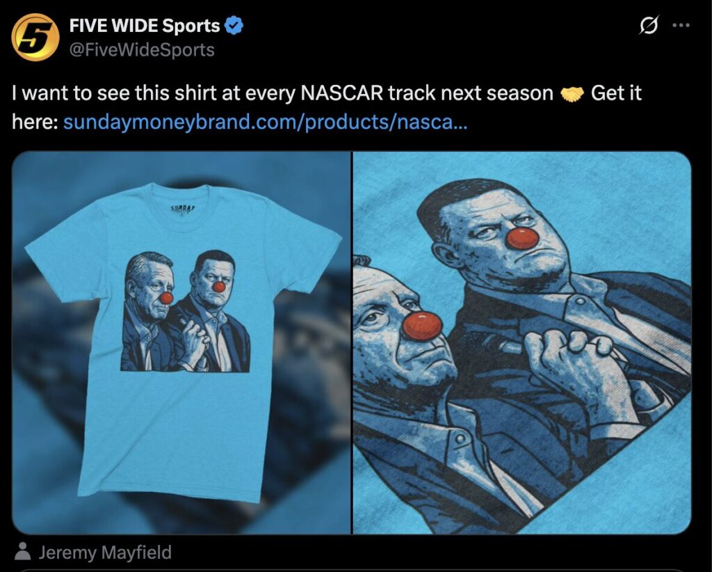 While Mayfield may have had run-ins with NASCAR on his own, his stance on these released texts reflects that of the NASCAR fan base, who have taken Phelps’s comments personally, with some making merchandise in response.