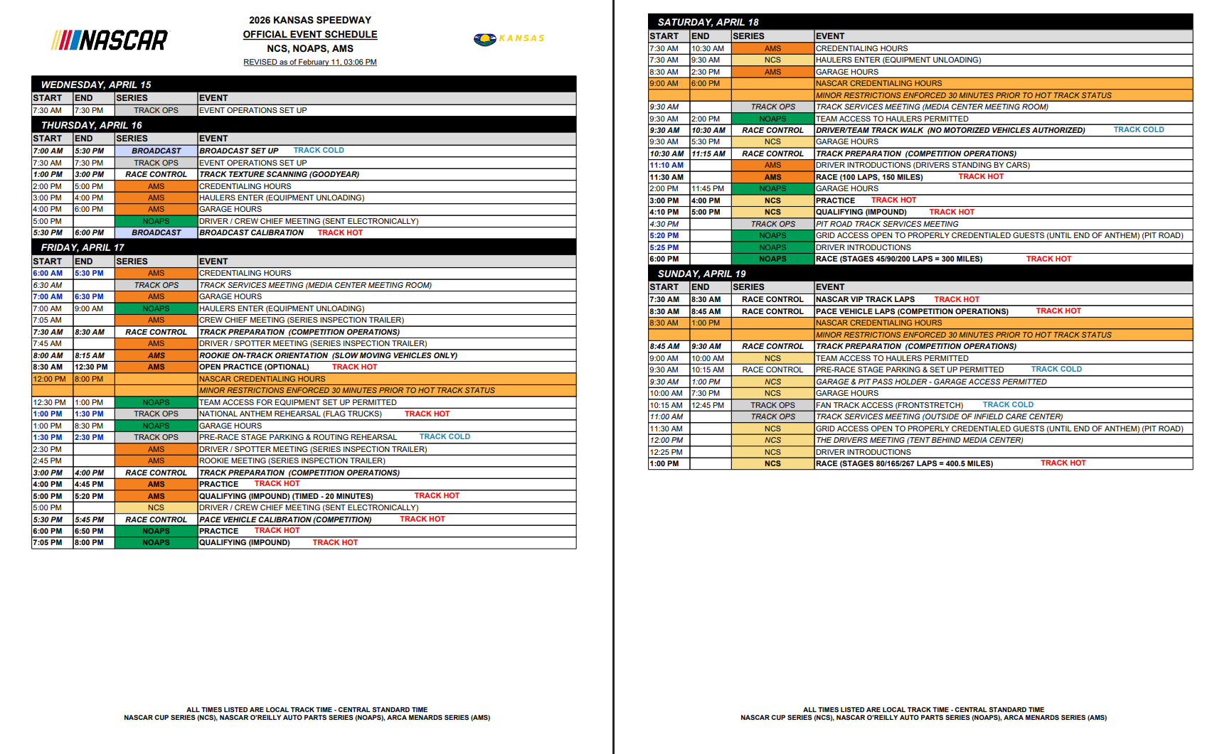 Weekend Schedule