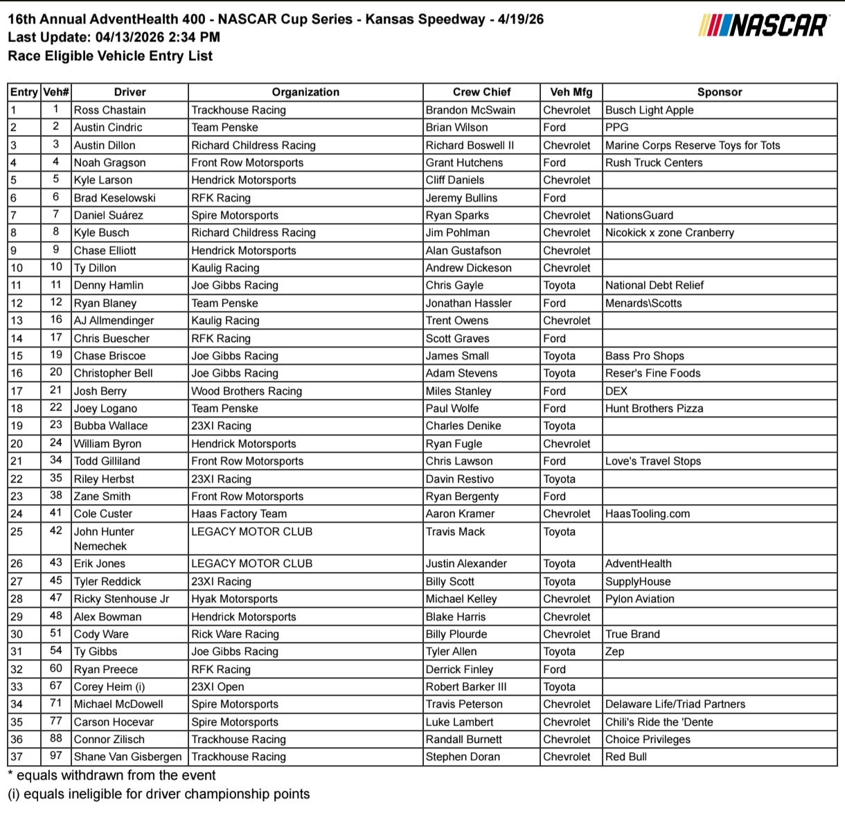 - Entry List (Preliminary)