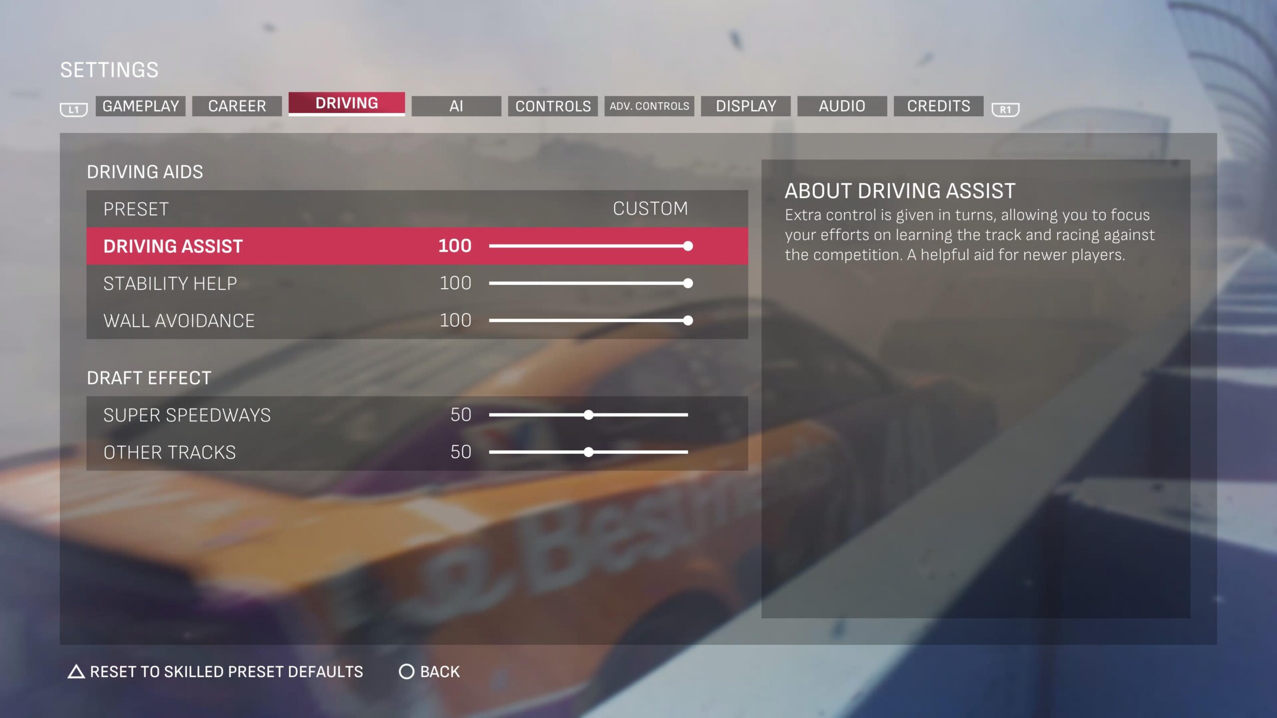 In particular, in NASCAR 25, players can adjust how the draft benefits cars on track for both superspeedways and other tracks in-game. So, say you find the draft over the top at Indianapolis Motor Speedway, you can tune down the Other Tracks option to fix this.