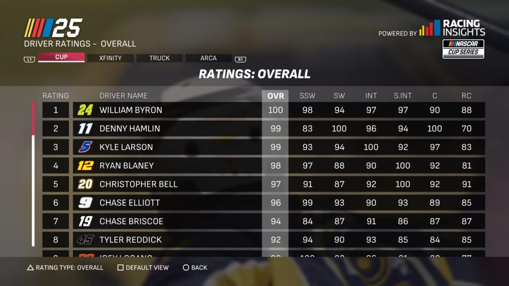 However, most important of all was the overrating. In all four Series, one driver received a 100 overall, with William Byron in the Cup Series, Connor Zilisch in the Xfinity Series, Corey Heim in the Truck Series, and Brenden Queen in the ARCA Menards Series taking home the honor.