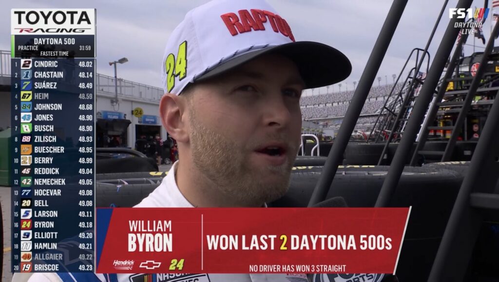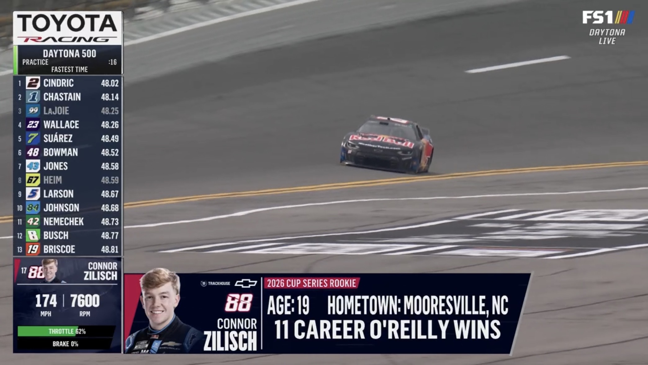 That change came during Wednesday’s first practice sessions for the 2026 Daytona 500, which showed off FOX’s new scoring pylon, new lower third graphics, and changed the background animation from the previous version some fans jokingly called the stars and stripes.