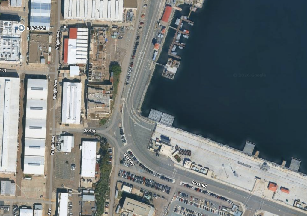 The aerial shot from Google Maps below shows where these tracks intersect and run with the portion of Quay Road used for the circuit.