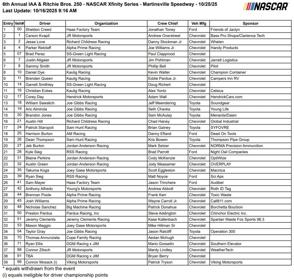Saturday, October 25: Xfinity Series Practice and Qualifying | Cup Series Practice and Qualifying | Xfinity Series Race