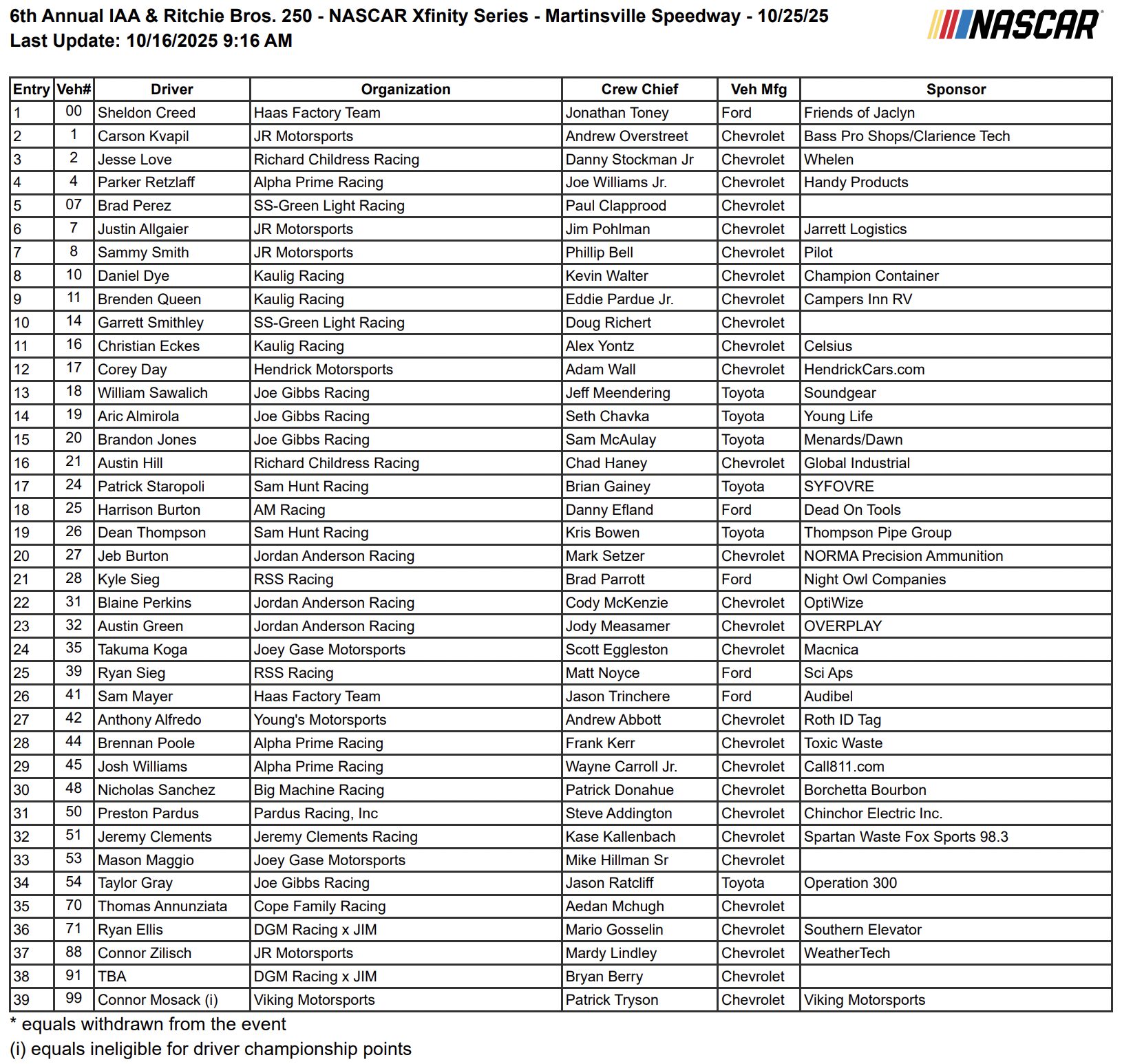 - This weekend is the final cutoff race for all three NASCAR National Series.