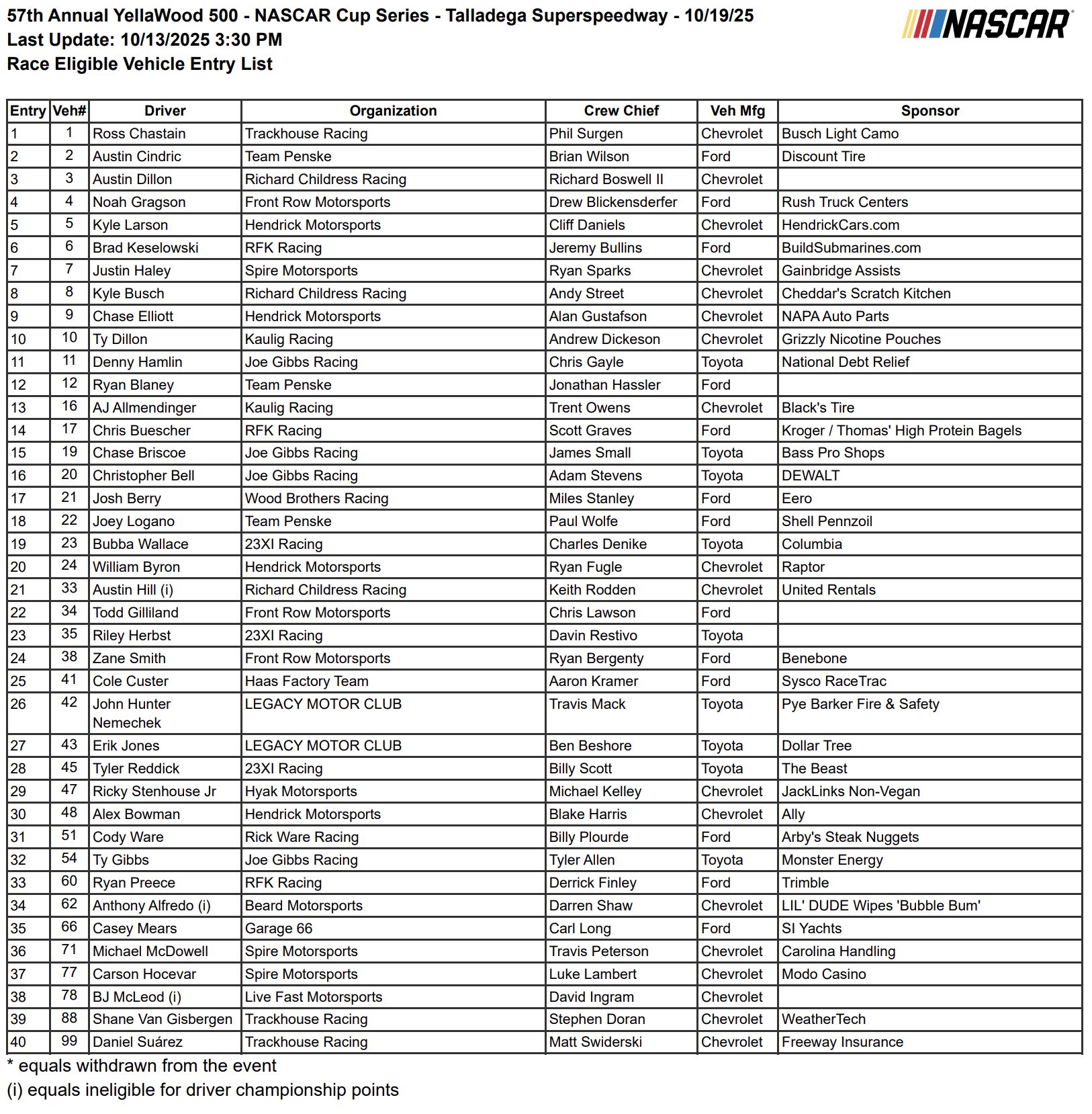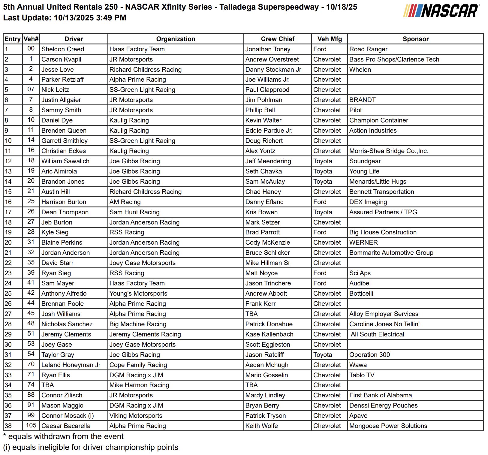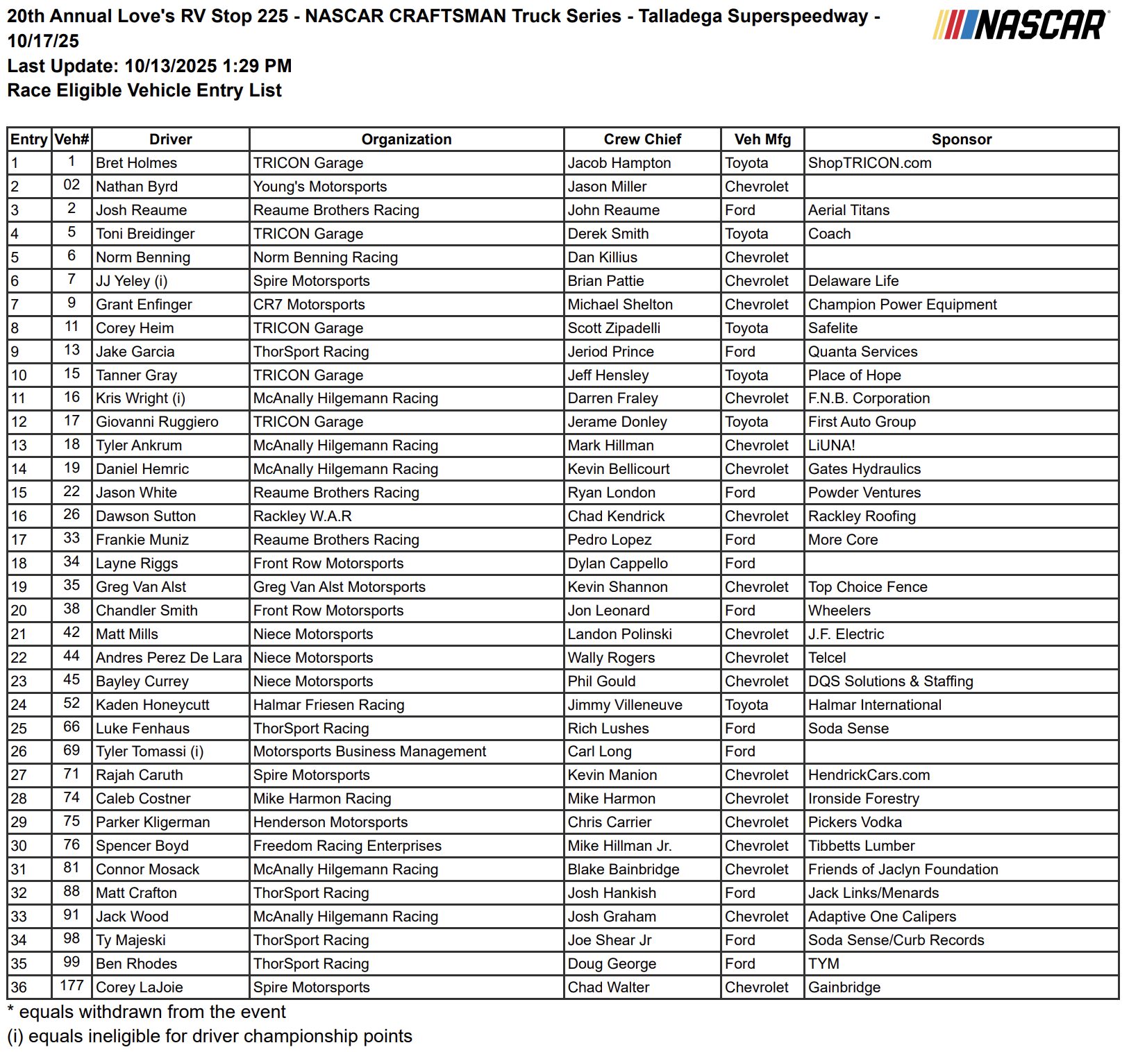 All three NASCAR National Series regroup for the final superspeedway race of the 2025 NASCAR season for Talladega Superspeedway’s first Round of Eight Playoff race weekend.