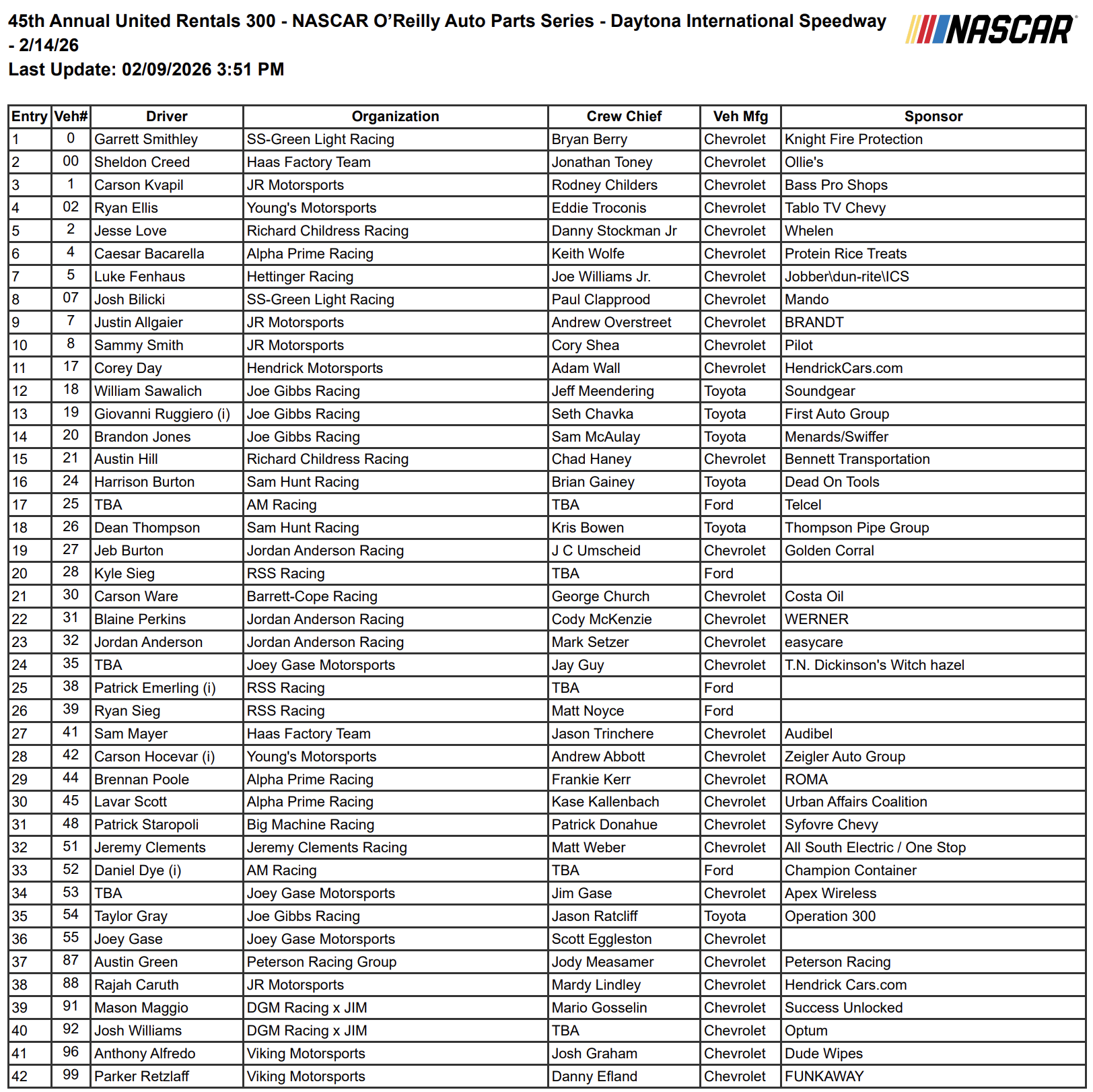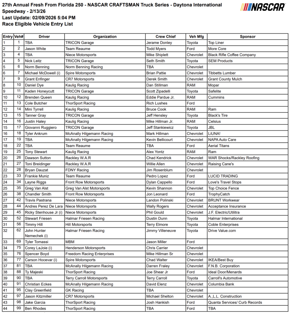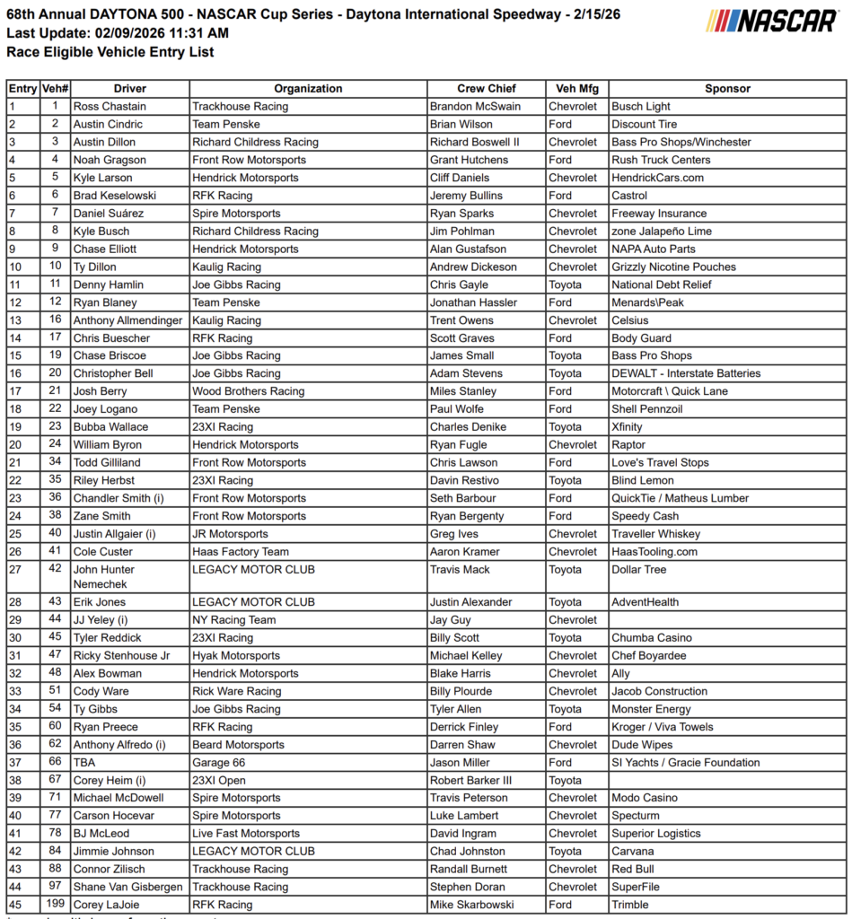 Every Open Entry in the 2026 Daytona 500