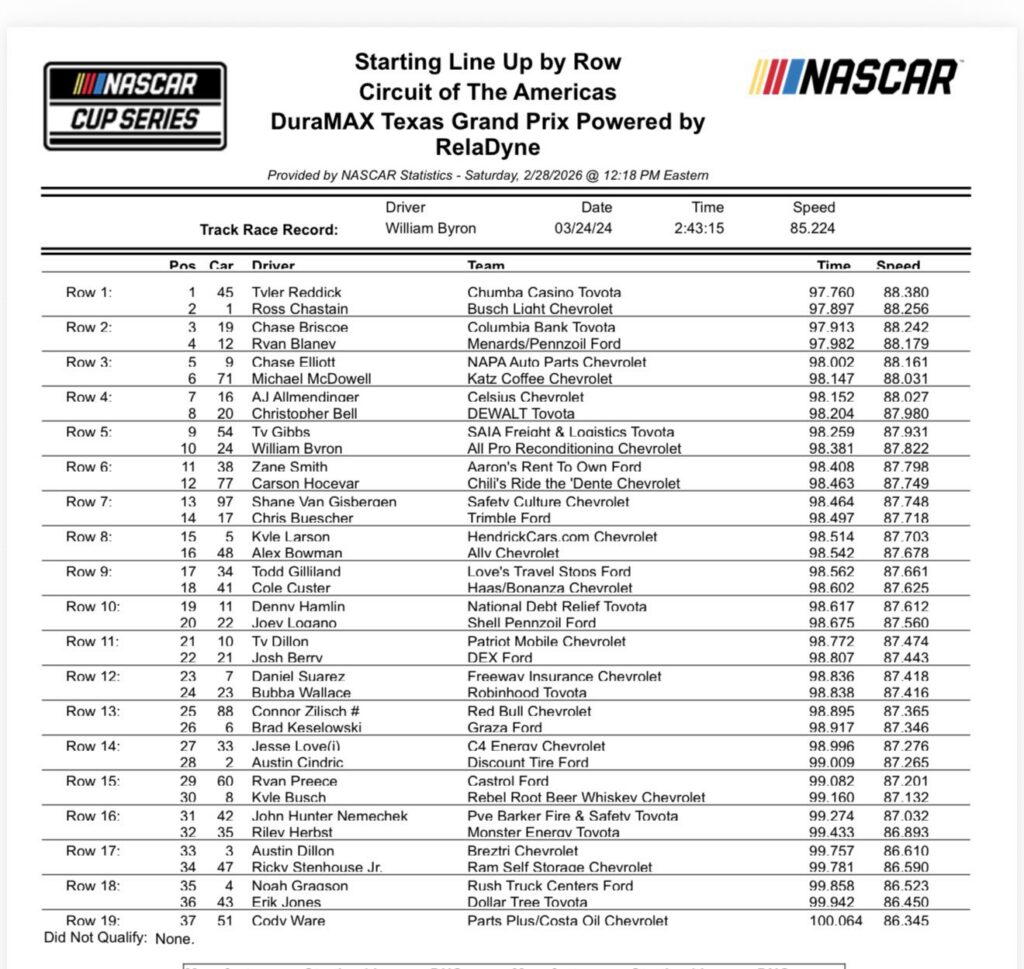 — Bob Pockrass (@bobpockrass) February 28, 2026