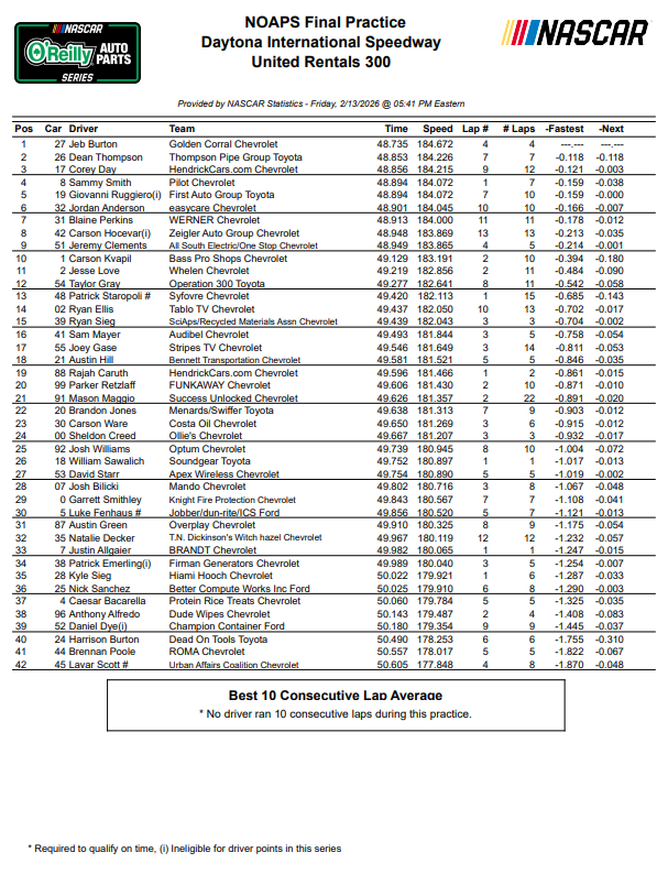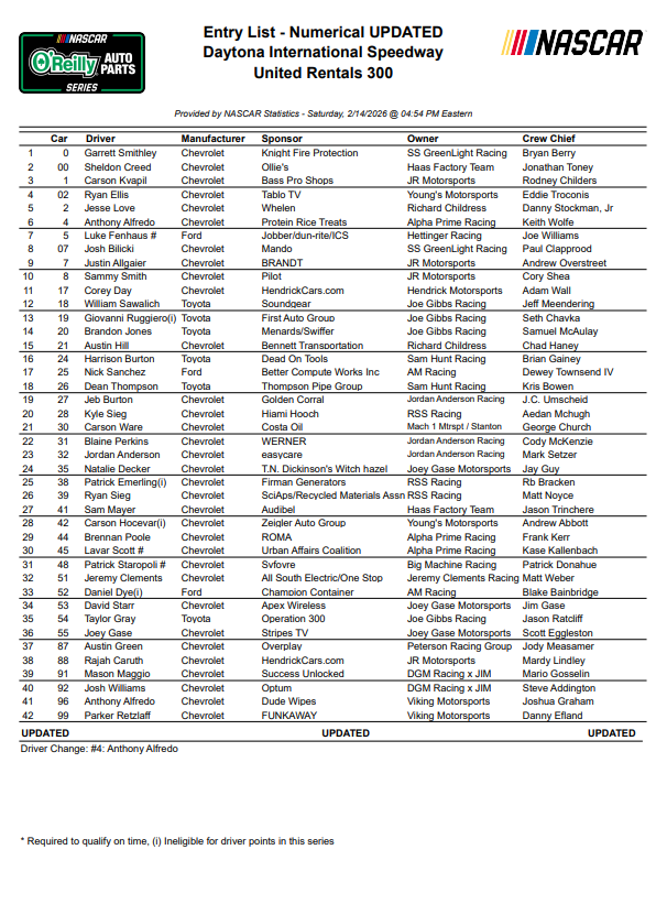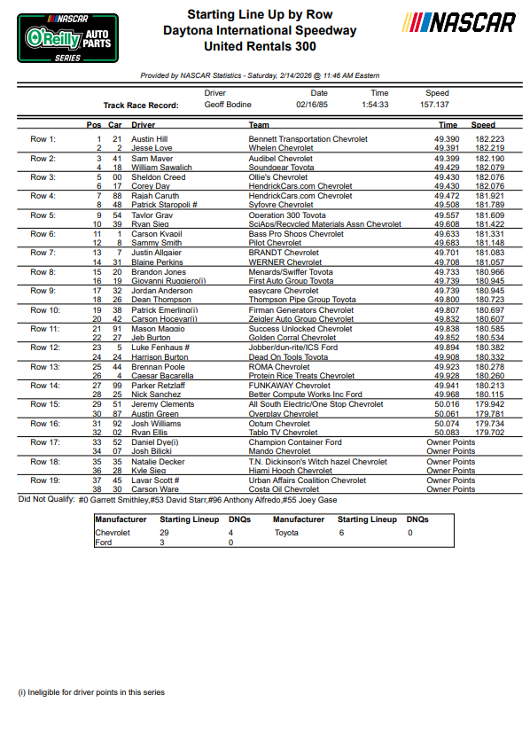 - Friday, February 13 – 4:45 PM ET | Saturday, February 14 – 10:00 AM ET