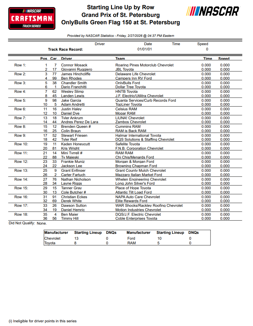 - Friday, February 27 – 4:00 PM ET | 5:05 PM ET