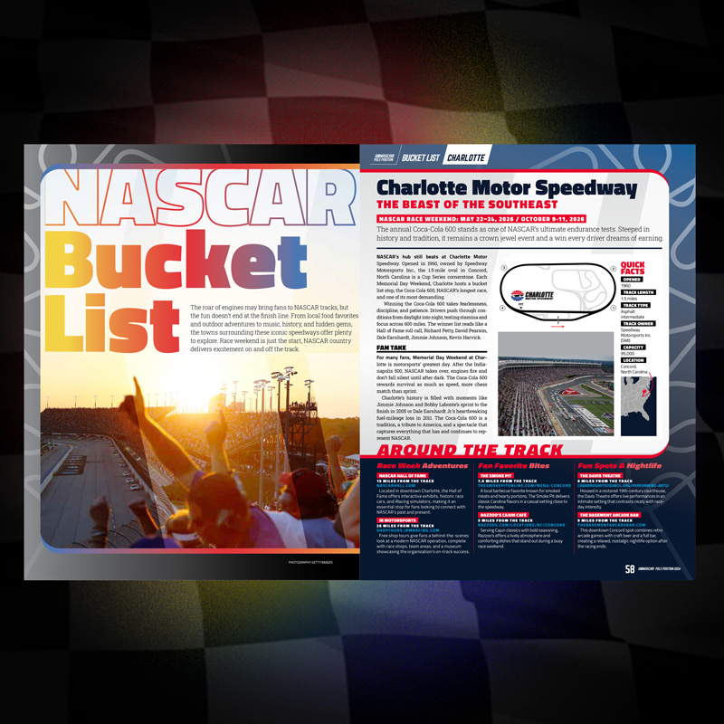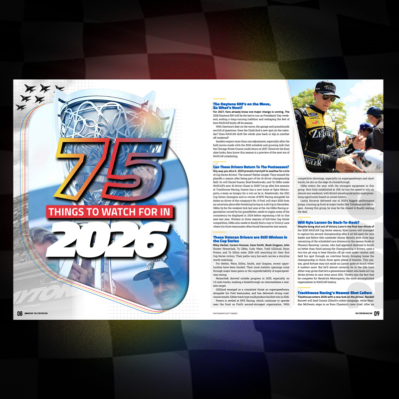 Printed on high-quality glossy paper, this premium edition is built to be kept and revisited from the first race through the playoffs. It’s a collector-quality magazine fans pull back out as storylines unfold and race weekends arrive.