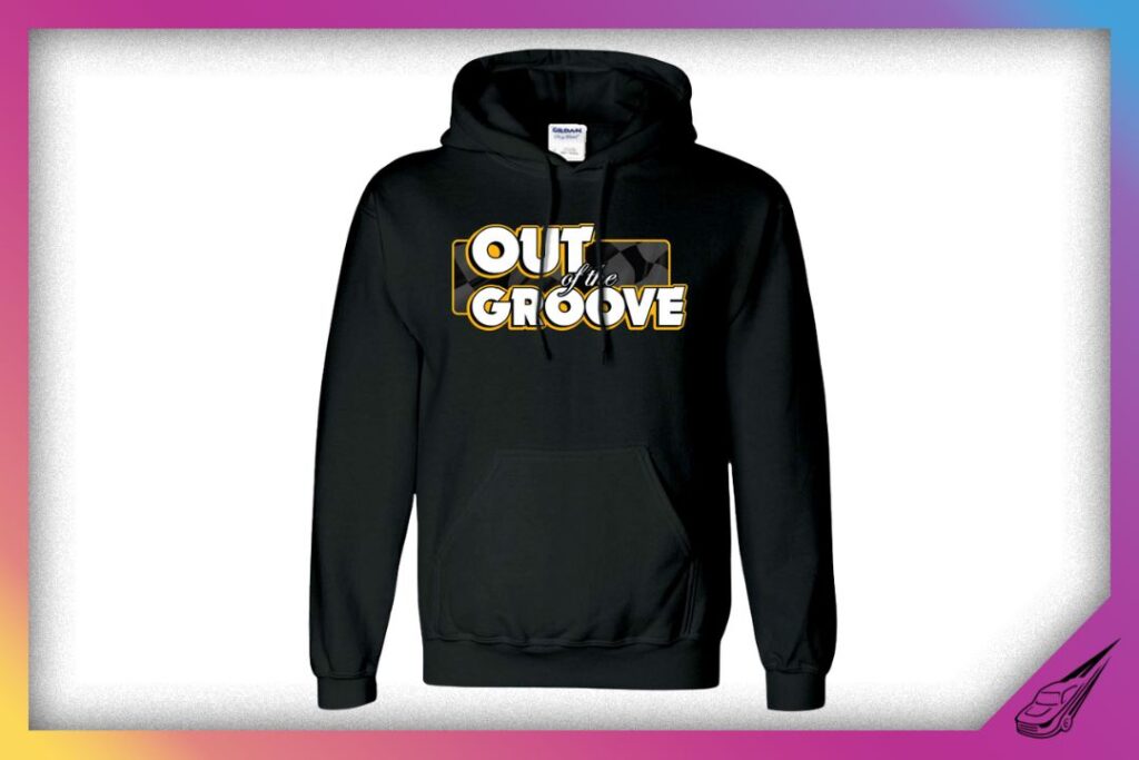 The Out of the Groove hoodie keeps fans warm during chilly night races, fall playoff weekends, or winter binge sessions of old races and podcasts. Soft, comfortable, and instantly recognizable to fellow fans, it’s a must-have for anyone who lives in racing merch.