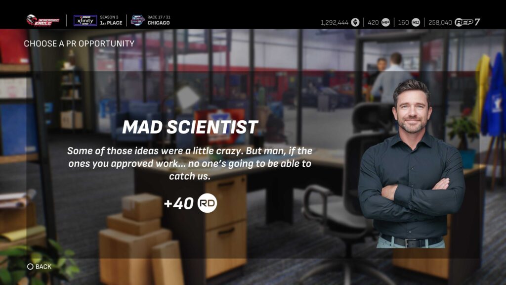 It should also be noted that these Turning Points are currently either bugged or random. We did not experience the Movie Role choice during our playthrough, but as you can tell, these events have very little impact on the gameplay. So you’re only missing out on Dale Jr., not any gameplay benefit.