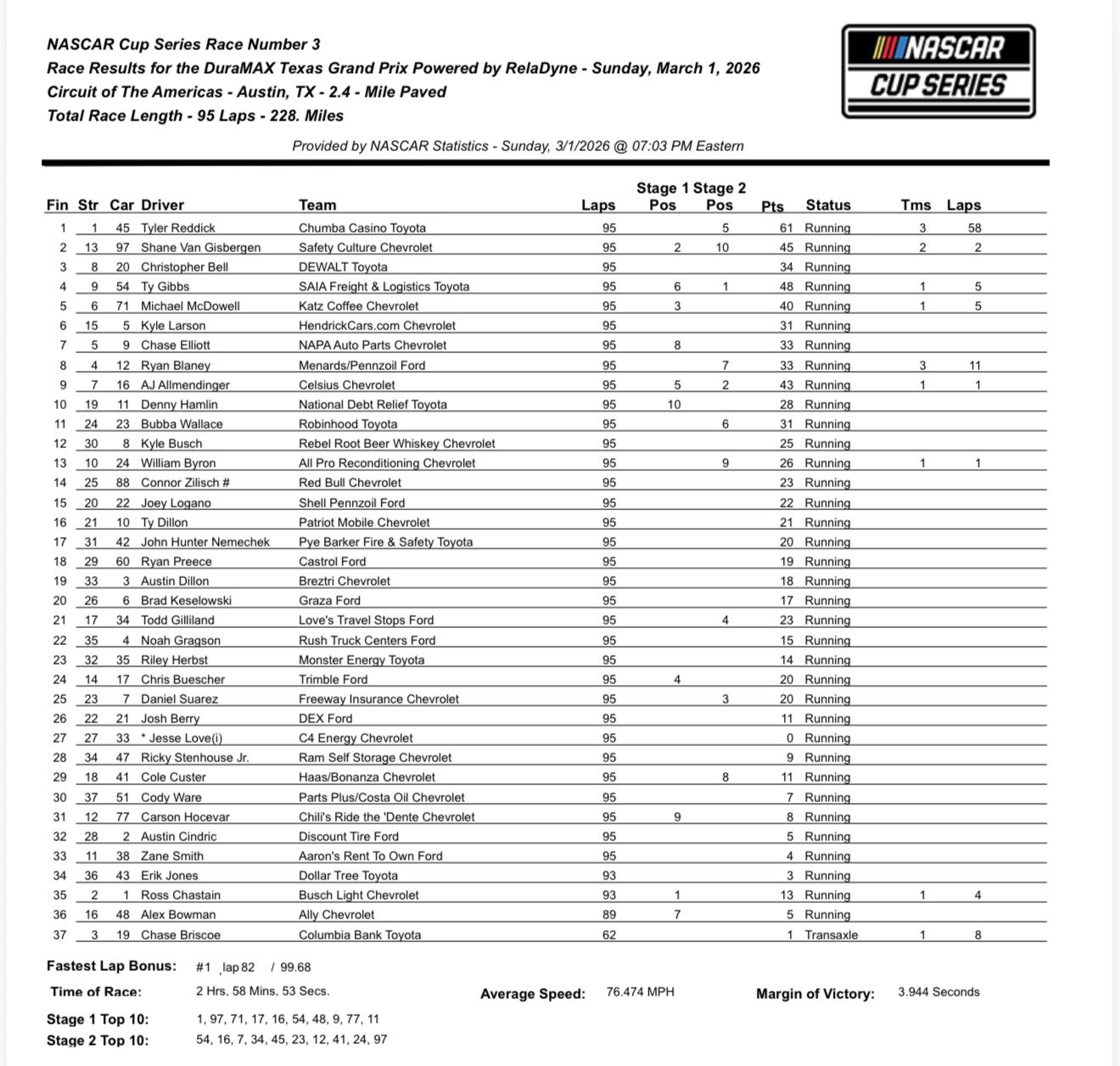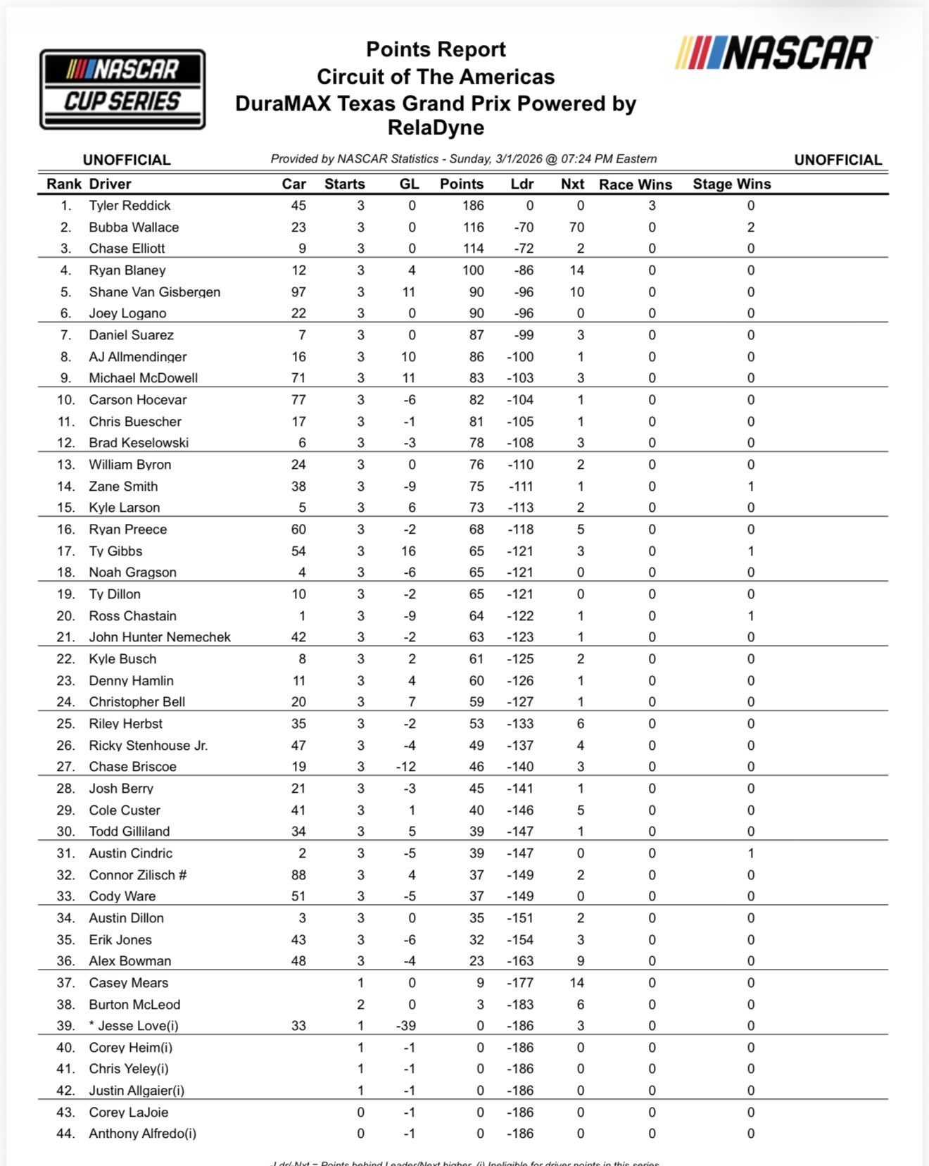 Gilliland is coming off his best season in the Cup Series. The 24-year-old matched his career high in top-10s while setting new career bests in average finish (20.9), laps led (130), and points finish (22nd). As the team enters its new “Tier One” status with Ford, many can expect more from Gilliland as he looks to lead FRM starting in 2025.