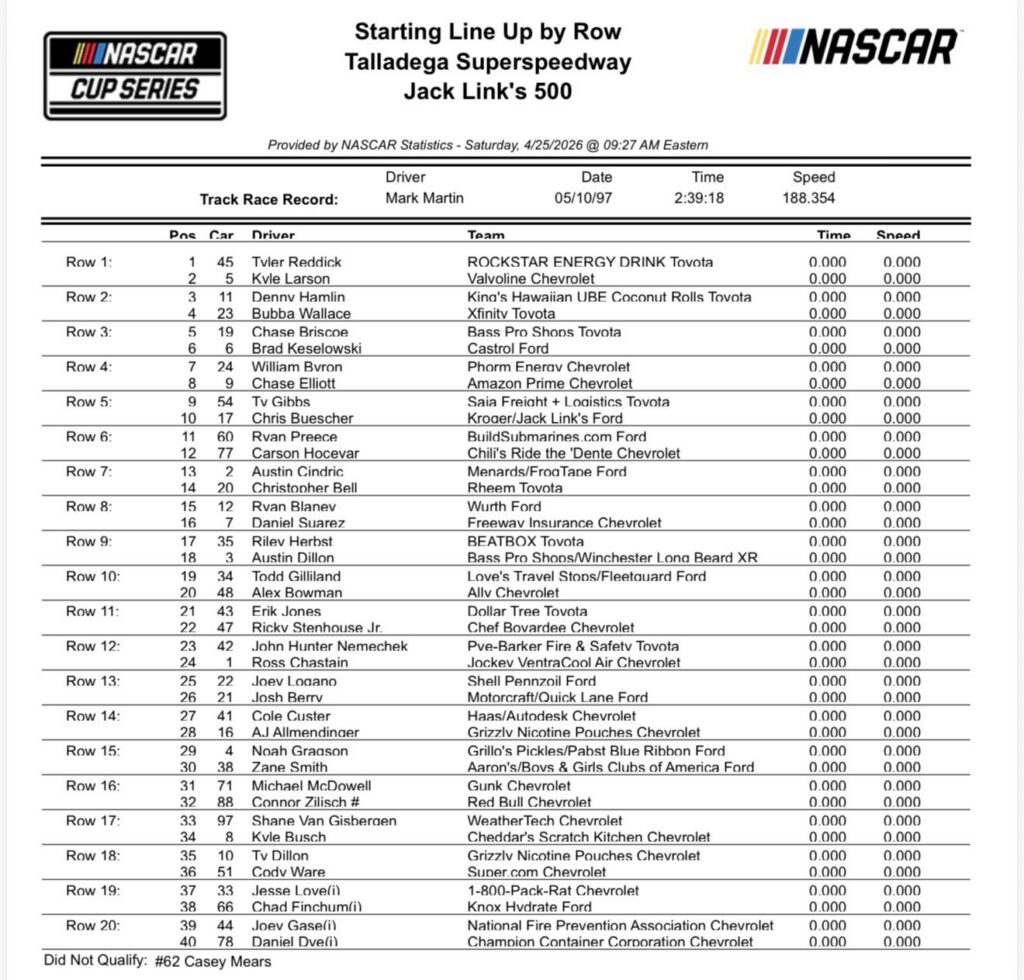 We race at @TALLADEGA today.