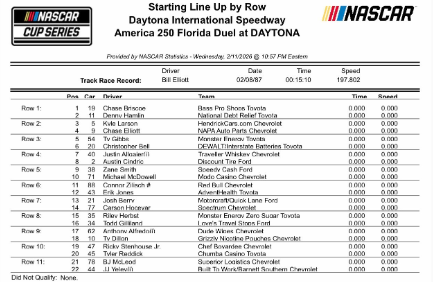 - While their starting positions may not yet be set, two drivers managed to qualify for the Daytona 500 on speed. The two fastest Open car drivers automatically advanced to the 500. Those drivers were Corey Heim (No. 67, 23XI Racing) and Justin Allgaier (No. 40, JR Motorsports). This will mark Heim’s first Daytona 500 start, and Justin Allgaier managed to race his way into the Great American Race last year in the duels.