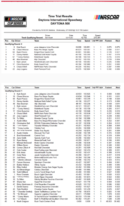 Front row qualifying for the 68th running of the Daytona 500 is officially complete. The front row is now set, and two open cars are officially locked into Sunday’s race while the fate of others rests upon the shoulders of tomorrow night’s duel races. Here’s everything you need to know.