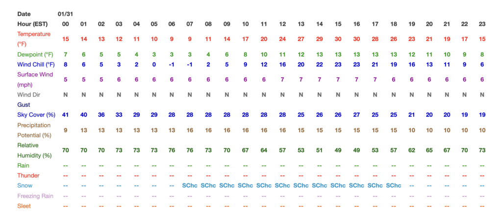 Per the NWS, the temperature will not rise above freezing throughout the day, and there is a slight chance of snowfall from 7 AM to 6 PM. Things may clear up by Sunday, with temps reportedly set to reach above freezing from 1 PM to 5 PM, with the LCQ race scheduled to start at 6:00 PM.
